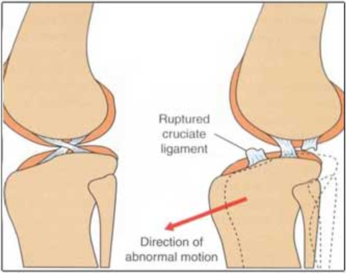 Instability from CrCL disease results in abnormal forward motion of the lower part of the knee. Cranial drawer motion to detect unstability from CrCL disease.