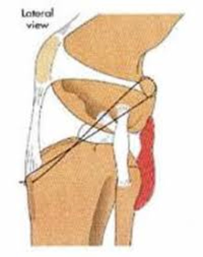 Tibial tuberosity advancement (TTA):Is another surgical option to treat CrCL disease that also works by altering the biomechanics of the stifle joint. In this procedure a cut is made in the proximal tibial at the tibial crest (top of the shin bone) and the crest is advanced forward. This technique alters the direction of pull of the quadriceps muscles on the patella (knee cap) tendon. This eliminates tibial thrust when the quadriceps are contracted during weight bearing (providing similar tension to what the cruciate ligament would).